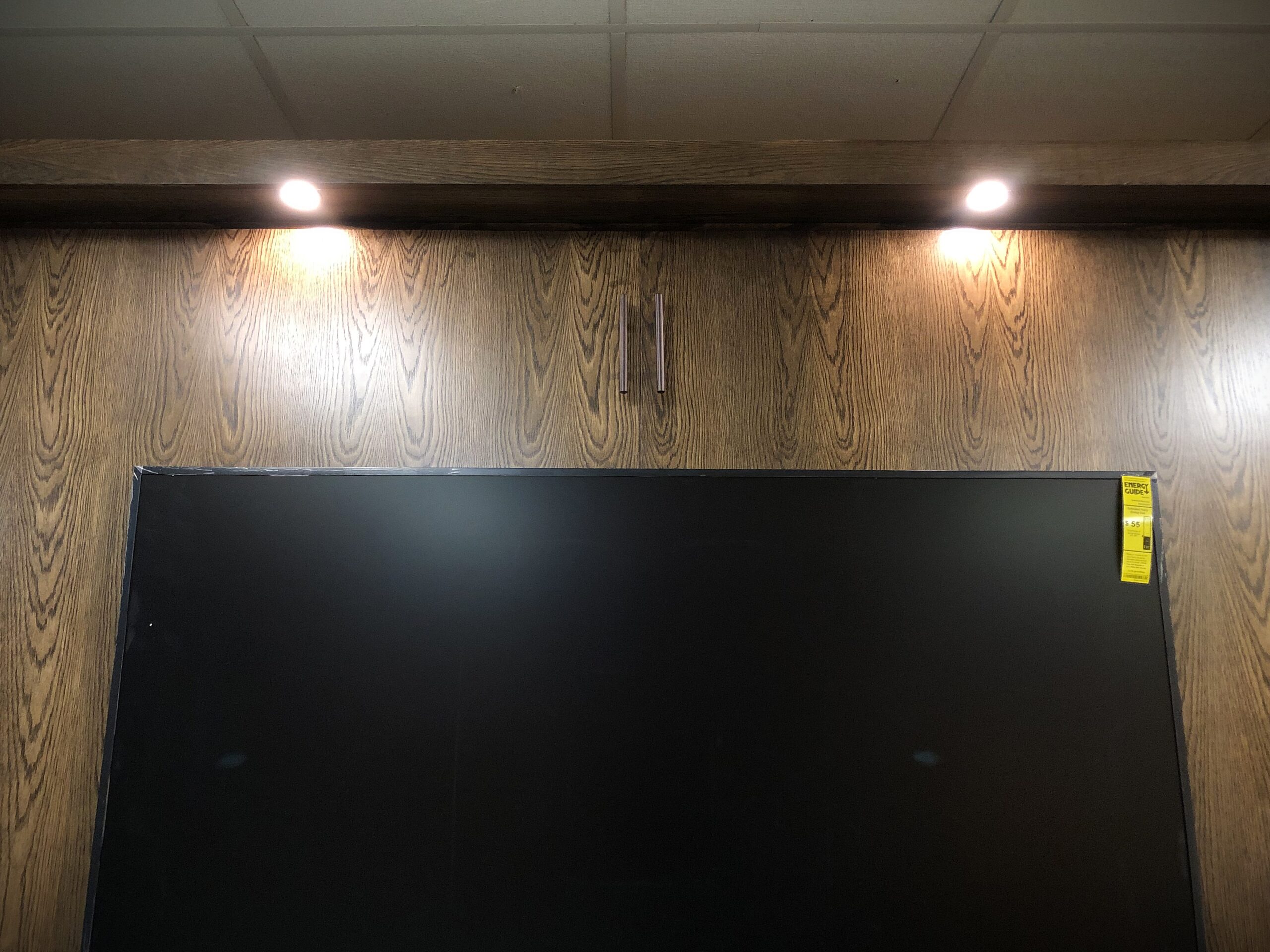 This king size Murphy bed features our clean-lined Manhattan face design, built in oak and finished in a rich Dark Walnut stain. Integrated into the bed is a 65″ Samsung Frame TV, creating a polished, multi-purpose focal point for the room. Subtle outset lights add both function and ambiance, making the bed comfortable to use day or night.