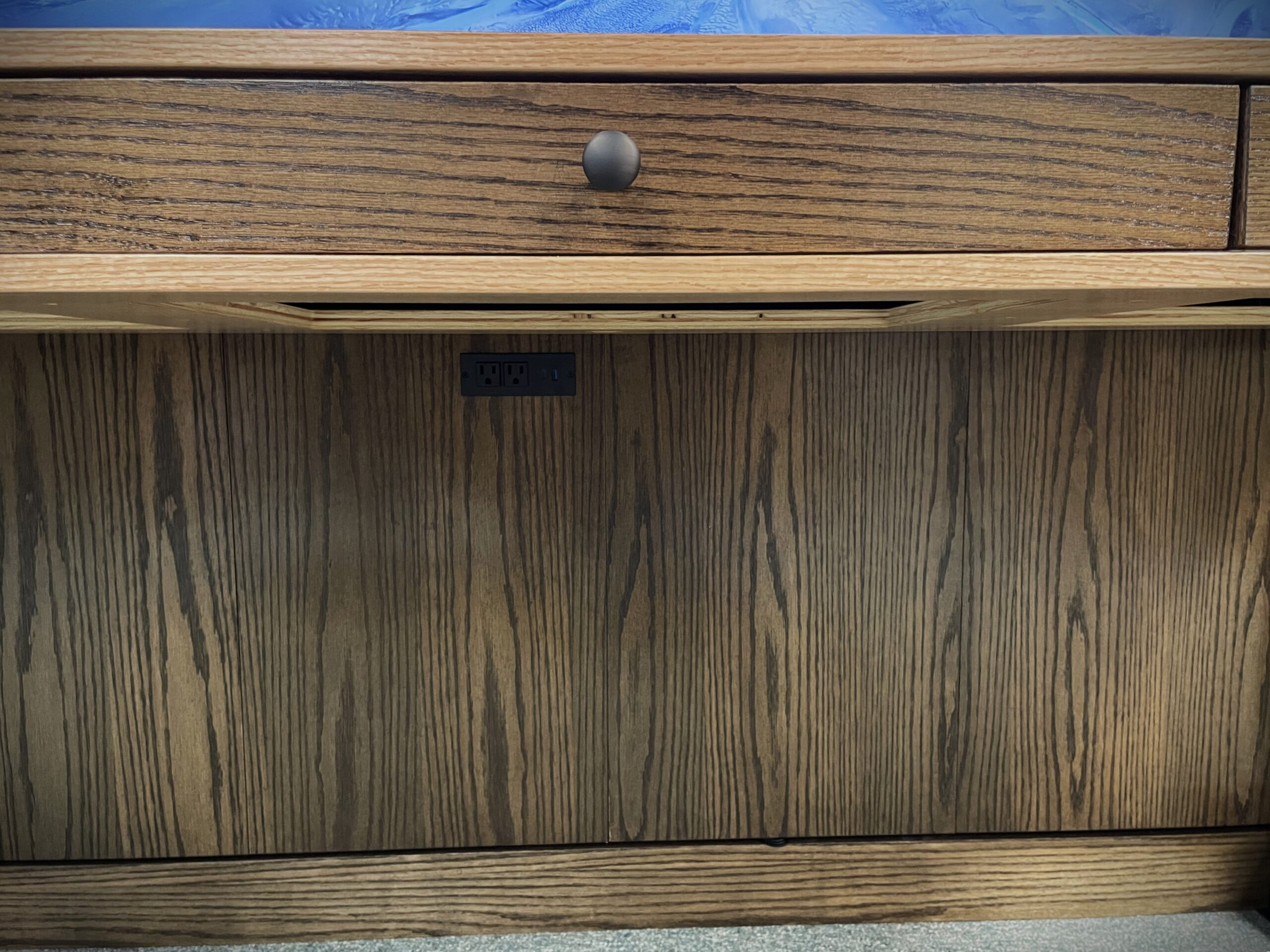 • A built-in charging station with two standard outlets, one USB port, and one USB-C port