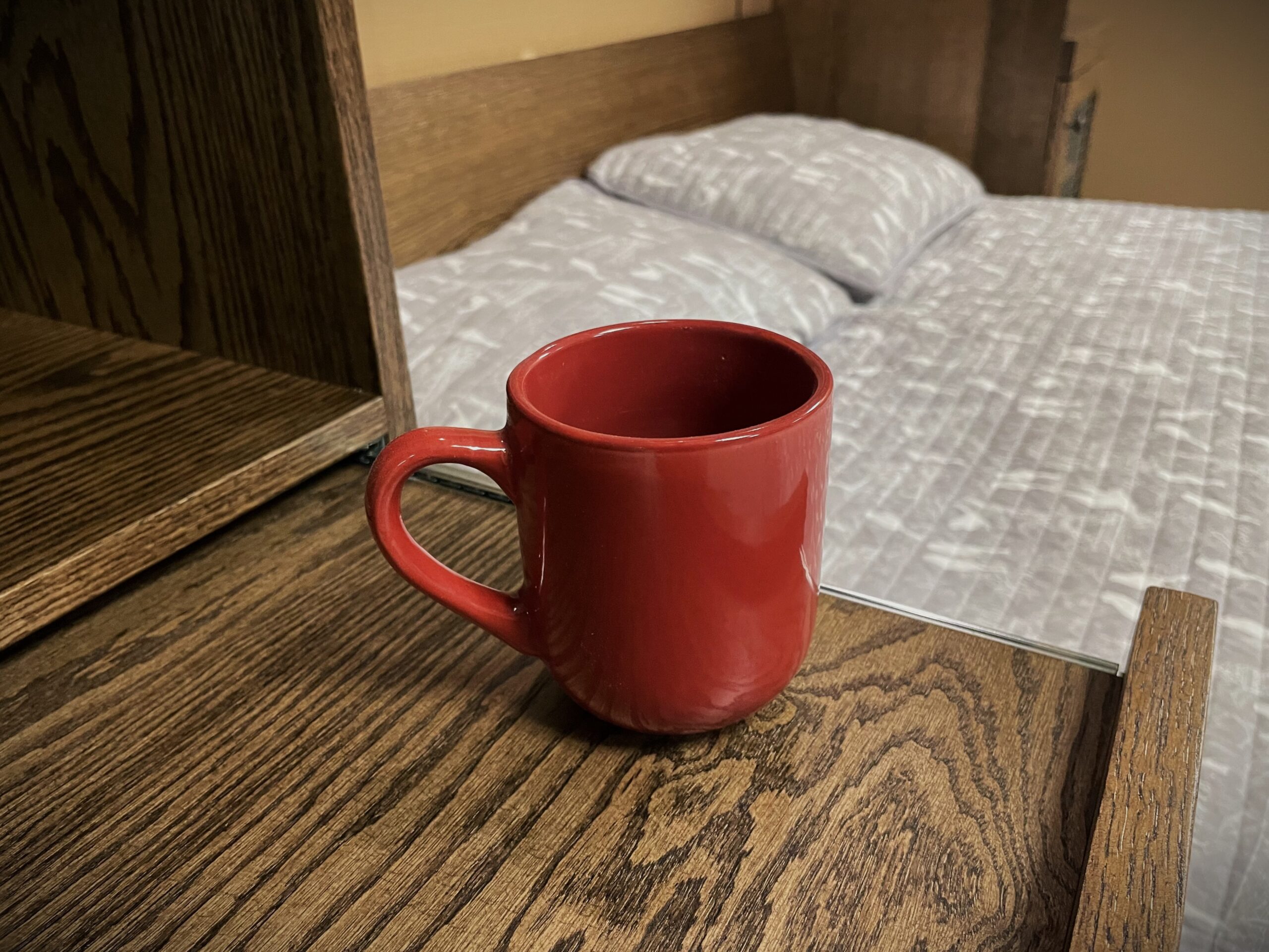 The fold-down desk continues the two-tone finish and is designed for everyday use. It includes: