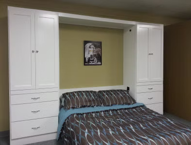 This Murphy wall bed was originally designed by the customer, Christy (That’s how we got the name). She wanted a bed that would fold up and have a hidden desk.
