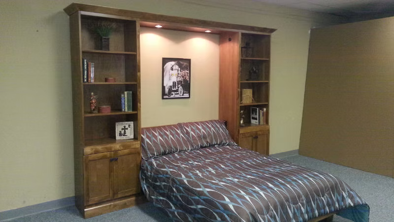 This is perfect for a home office. Bed/Desk/Cabinet/Extra Room!