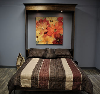 This one features a 55″ Samsung The Frame” LS003 Series are the most popular. This Television is made to fit tight against the wall and works well with this Murphy bed.  The power cord is low profile and the accessories hook-up such as HDMI or Cable will be controlled by a box that can be placed anywhere. That box is connected by a very thin wire.