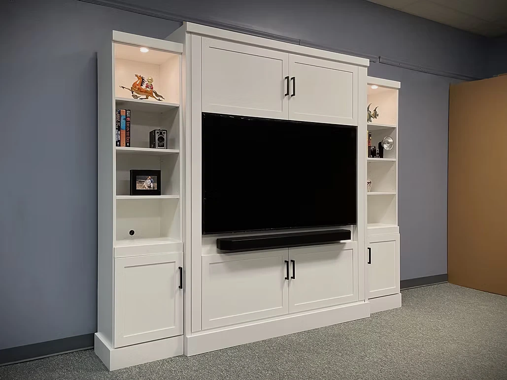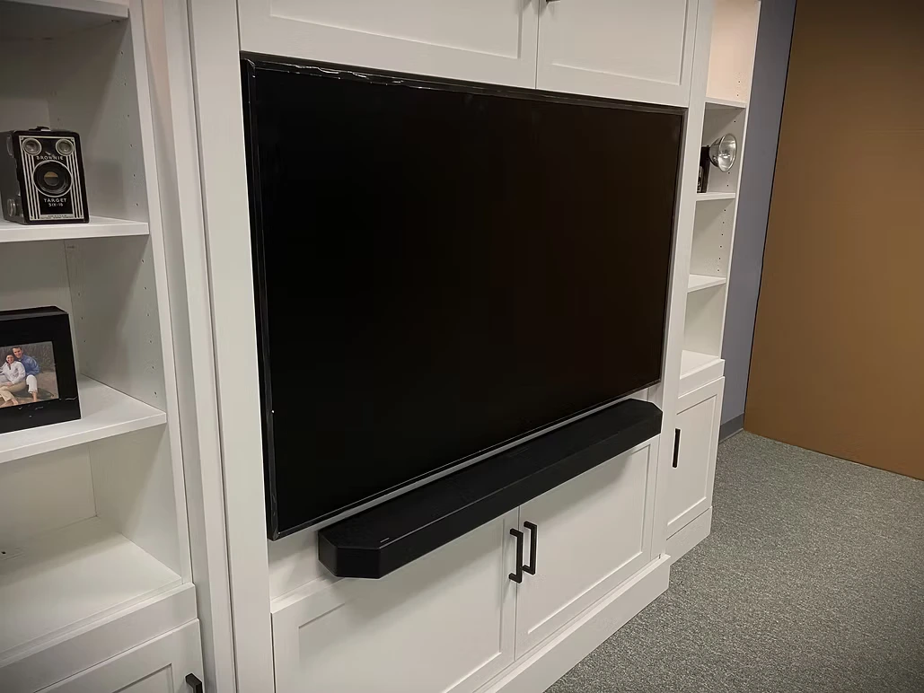 We embedded both a TV and a sound bar into the face to give it more of an entertainment center look. Most Televisions are supplied by the customer.