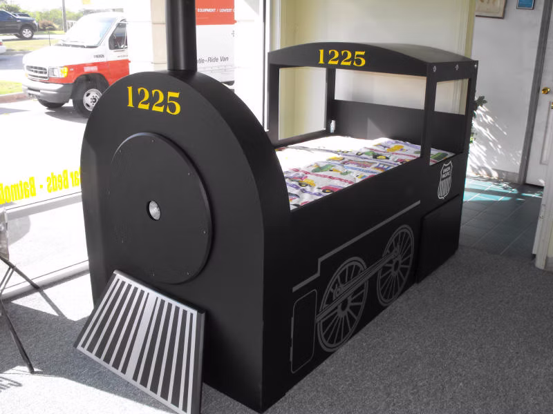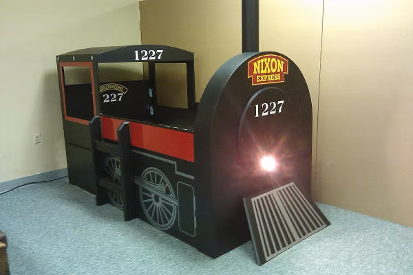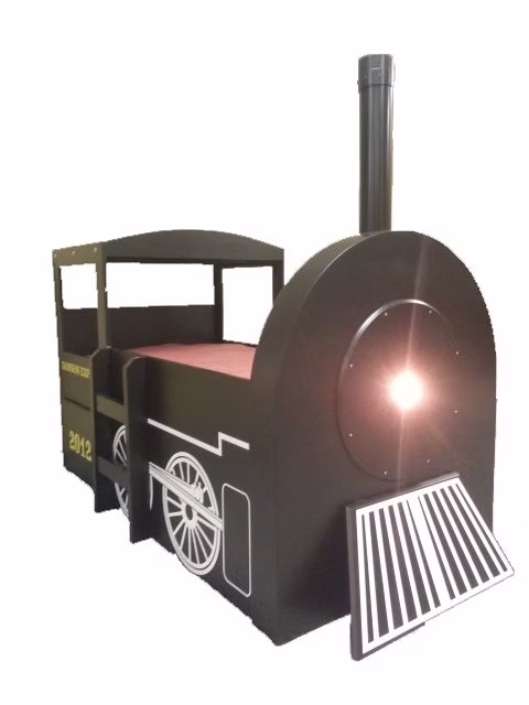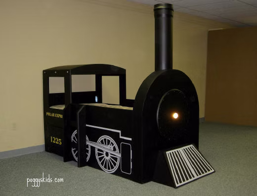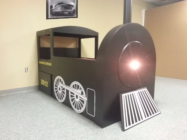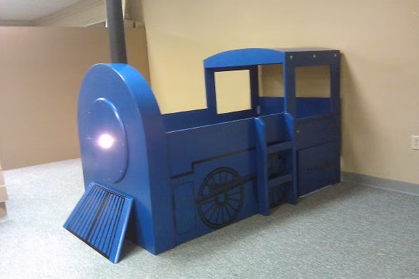 Custom built bed in a train theme. This bed is a fun one for the kids. We can build this one in any color with any theme. We’ve done built them in Hogwarts, Polar Express, Union Pacific, and will even put the kid’s name on it (Dawson Express).