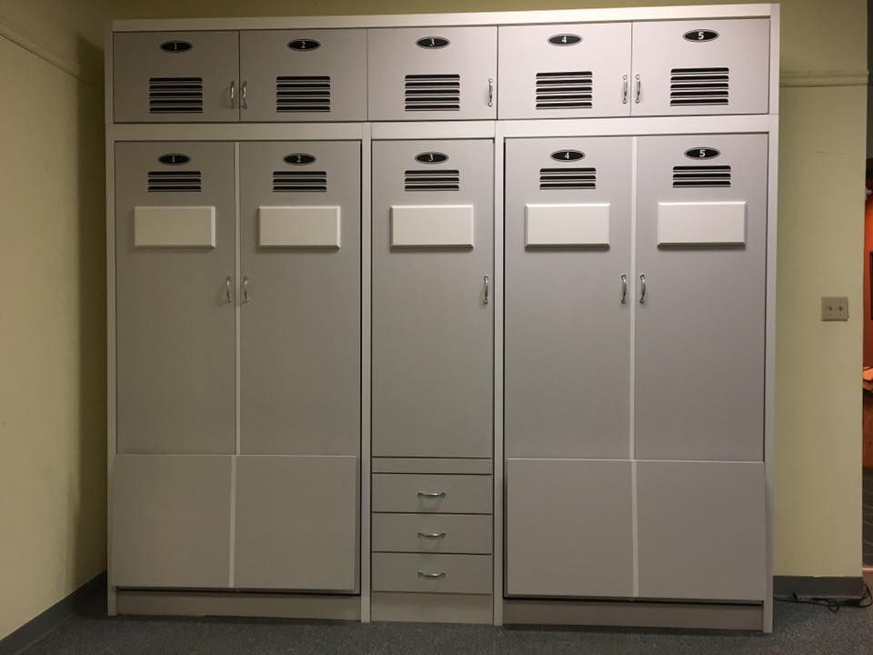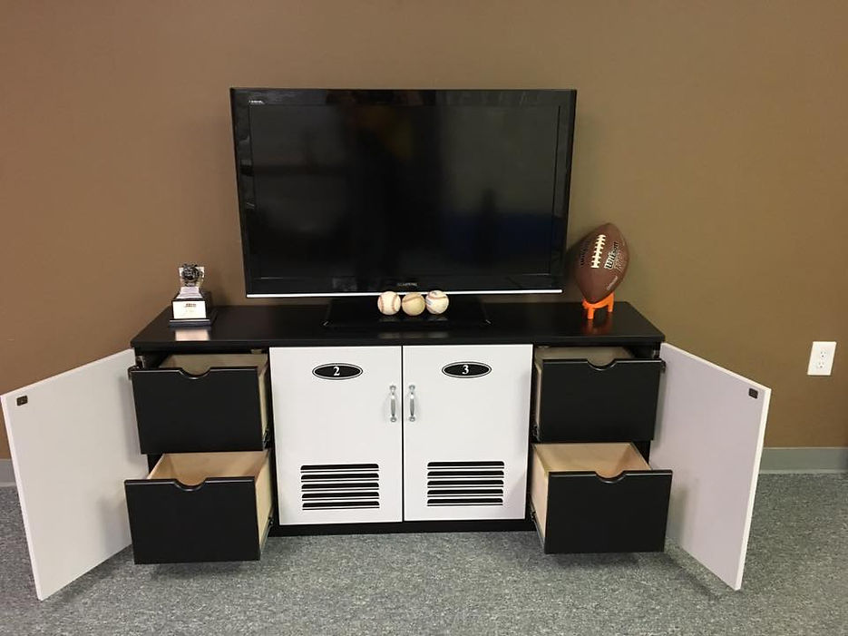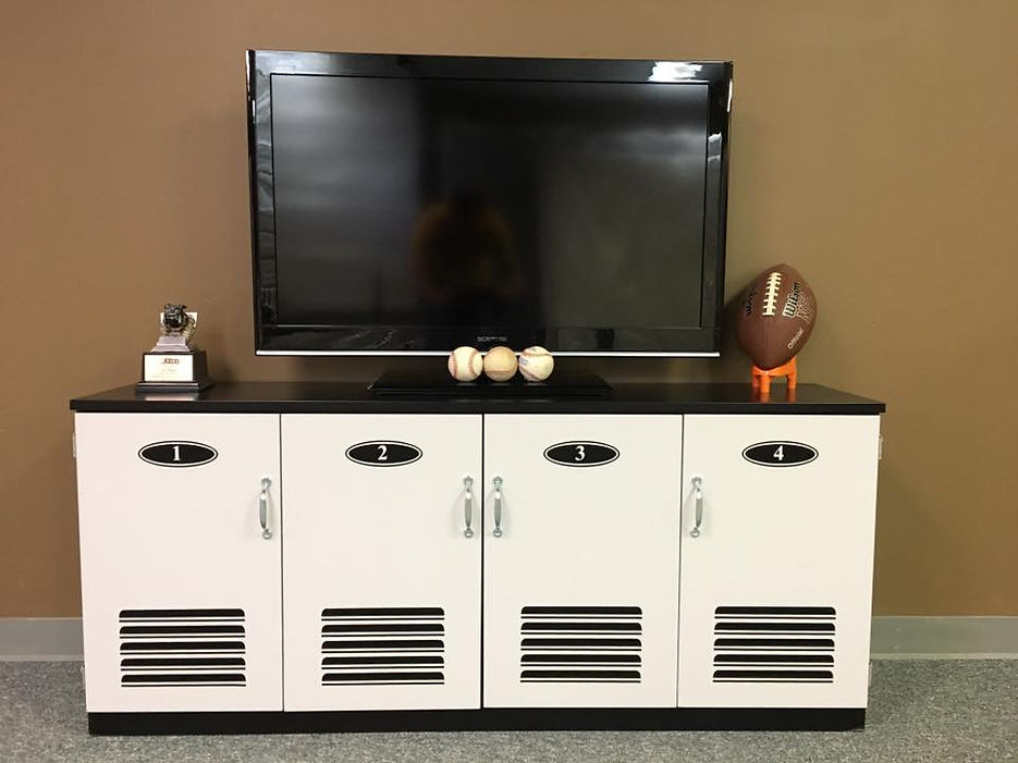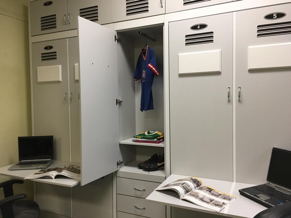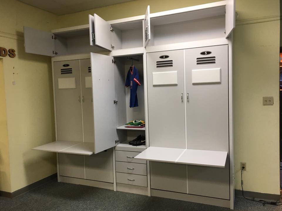 Also no team graphics. We can put most teams on the lockers, normally under the white name plates.  We also have all the team color swatches and can custom built it in your team colors.