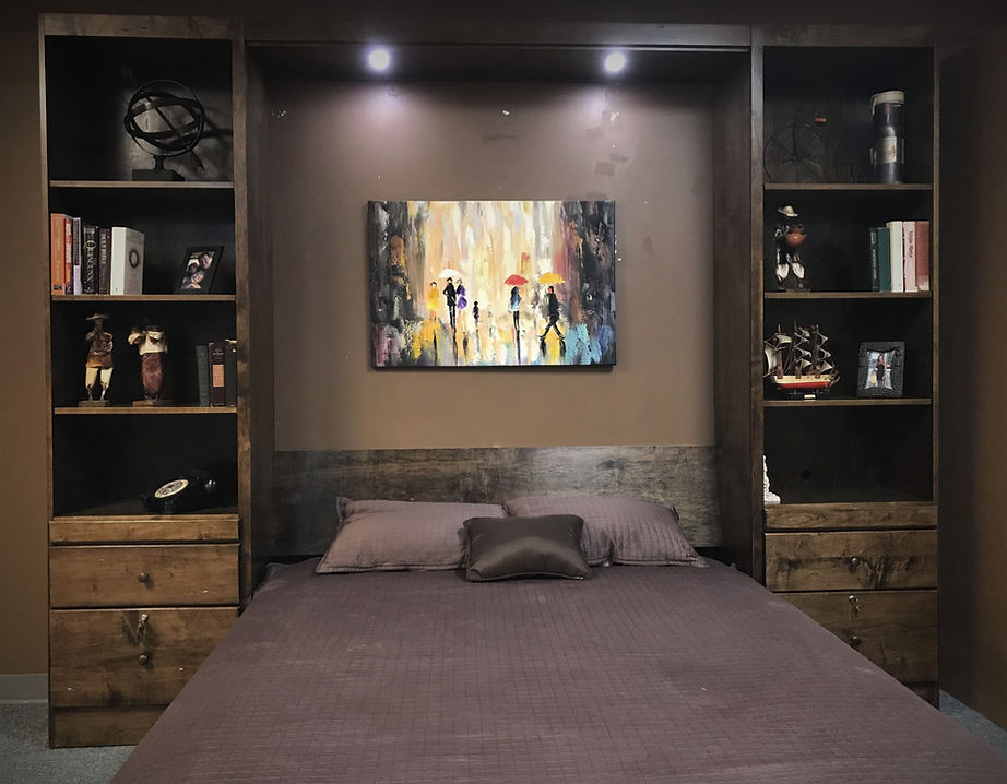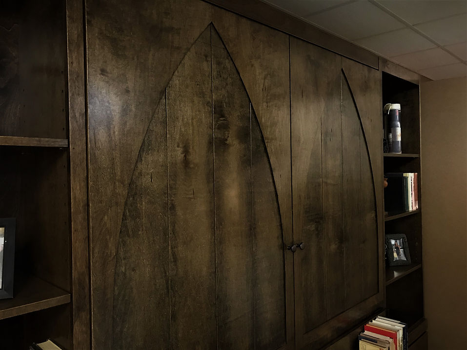 This is a rustic murphy bed with Gothic Arch style doors.  We normally finish