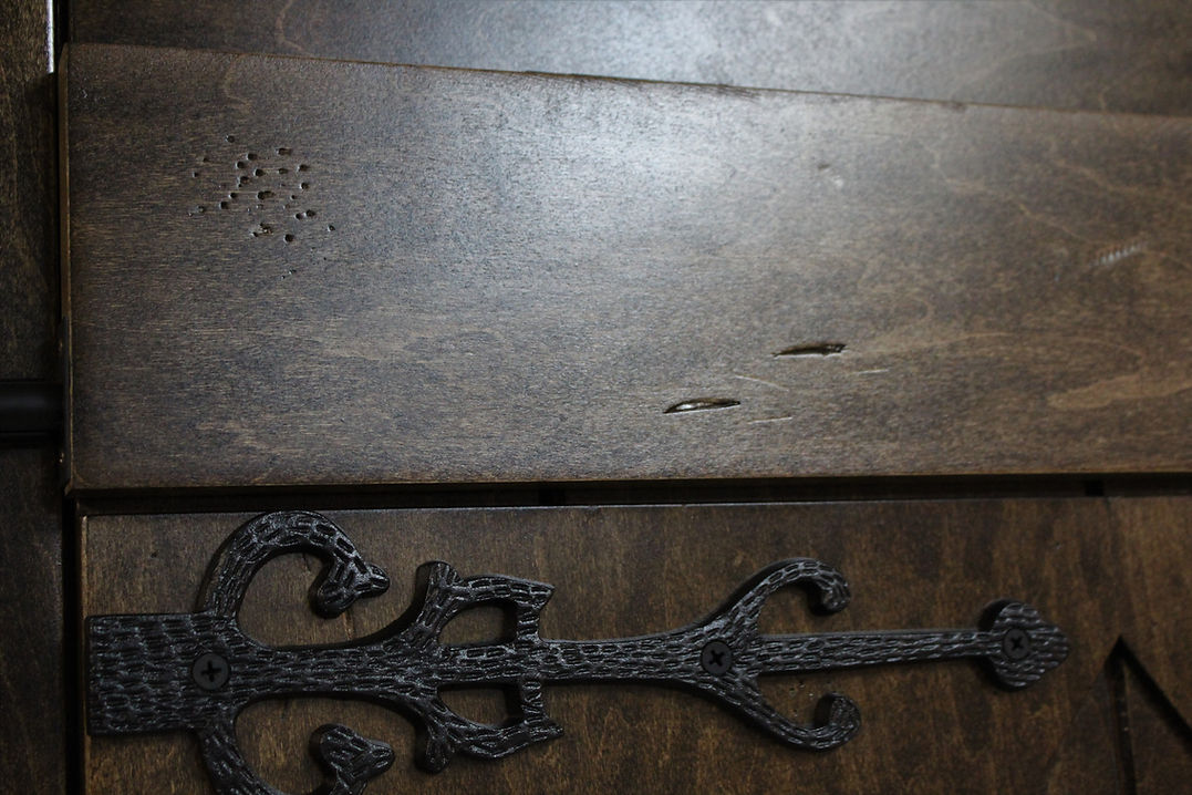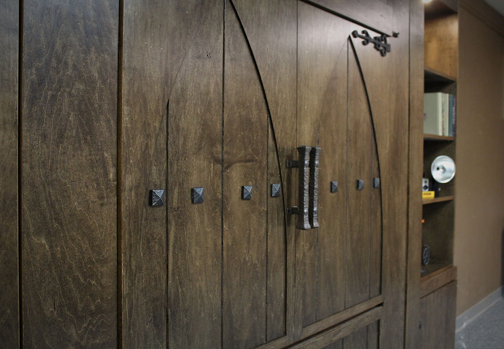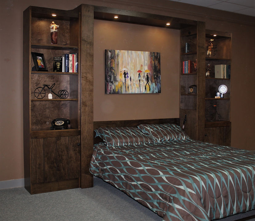 This is a rustic murphy bed with Gothic Arch style doors. We normally finish