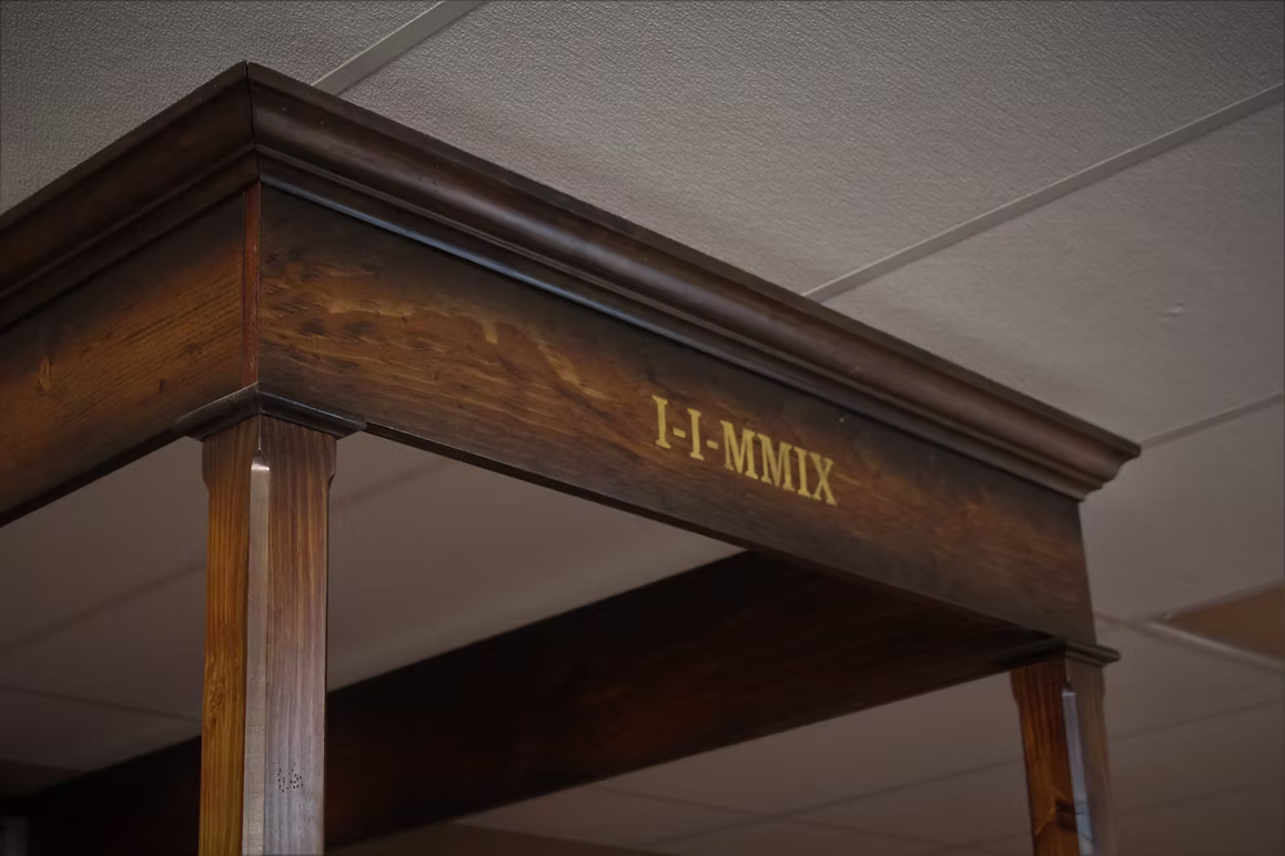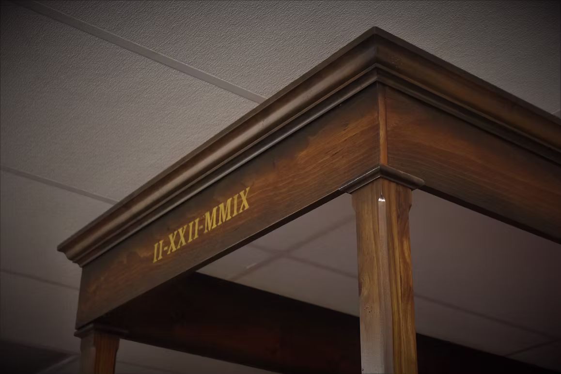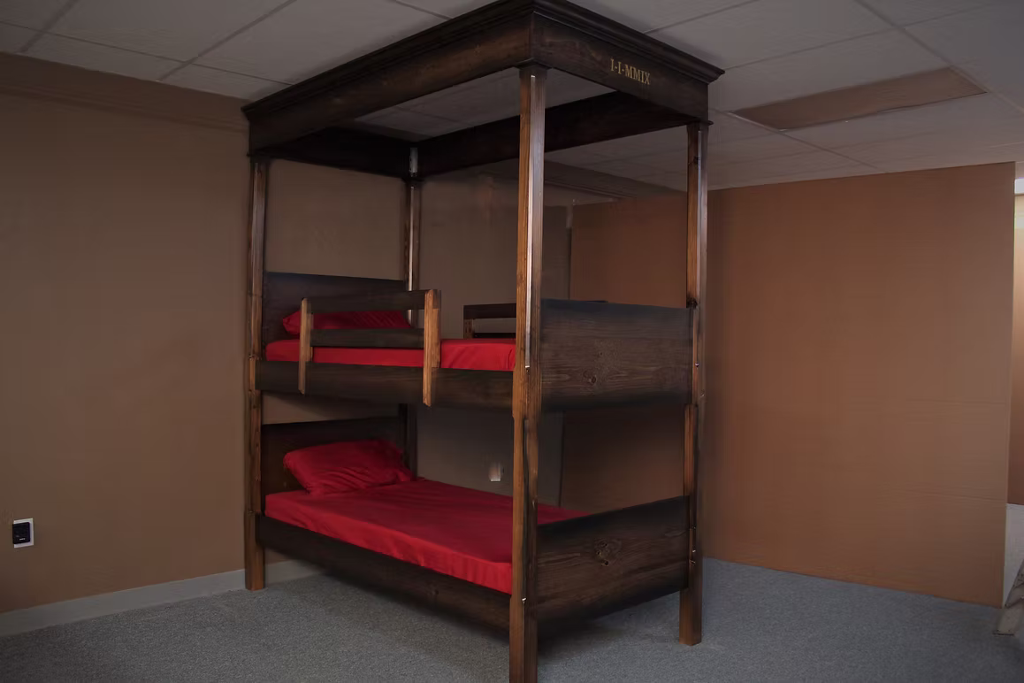 This custom designed bunk bed was inspired from the Movie Harry Potter. The movie had a 4 post bed, but we desined this one to be a bunk. Complete with the Roman Numerials of the Child’s birthday.