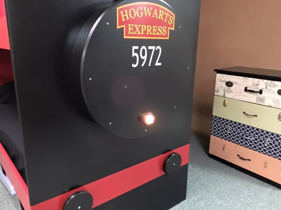 This is a train bunk built in the Hogwarts theme. We have built a Thomas the train, Percy the Train and now Hogwarts.