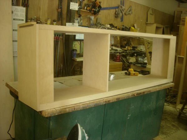 We added an upper bookcases for extra storage. We also contined the fluting and rosettes on the side molding.