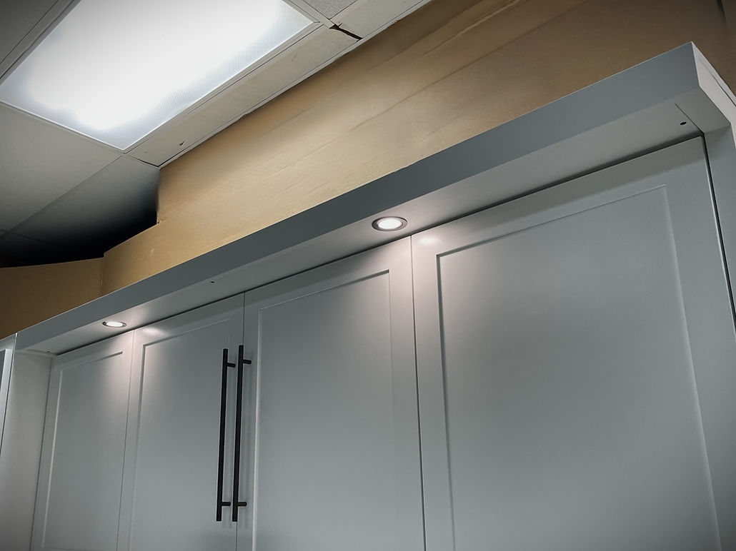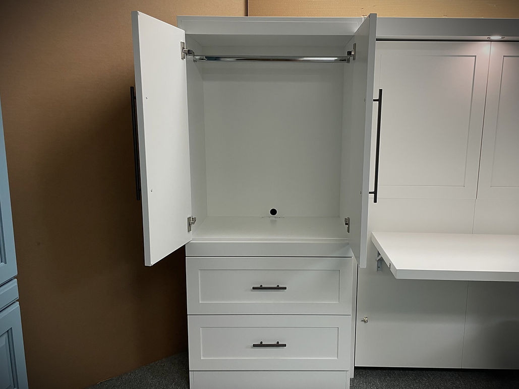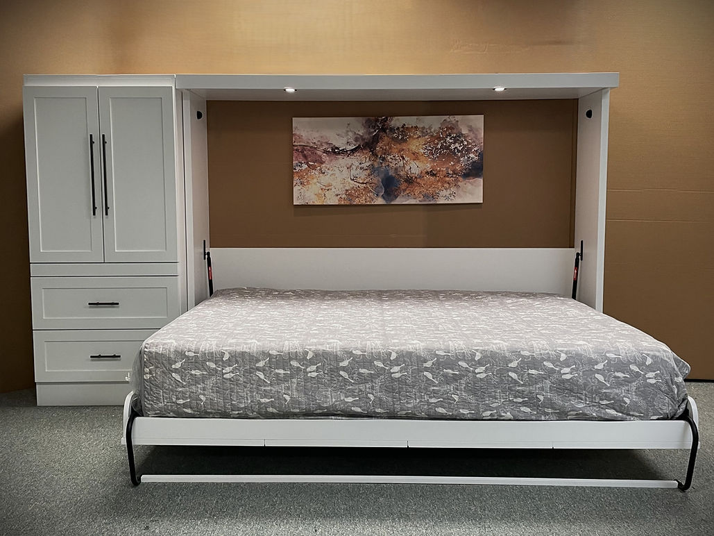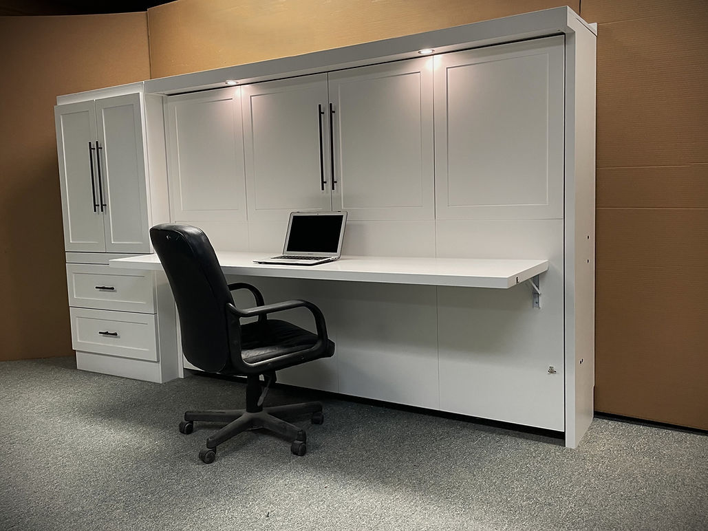 This horizontal (sideways) Murphy Wall Bed that has a desk that can fold down. This is perfect for smaller rooms that you are wanting to make dual-purpose.
