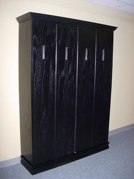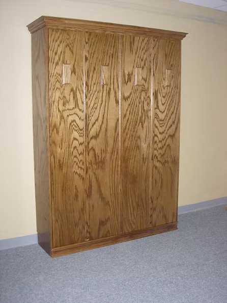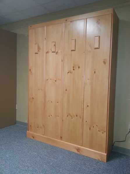 This is an easy way to dress up a murphy bed.  We took the simple face of the Alpine and added Strips of profiled molding. This breaks up the plan front without adding a lot of cost.