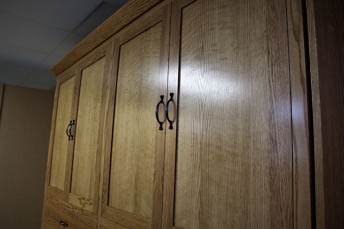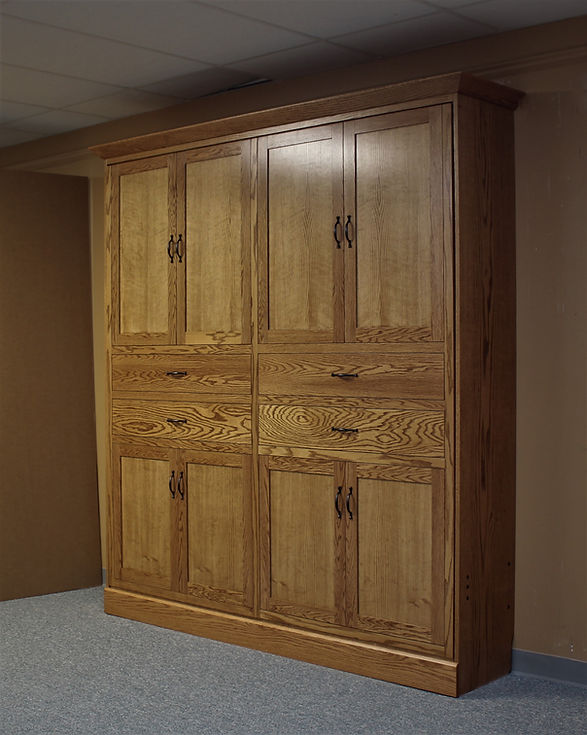 This is a cool style. This is a face with a series of false Doors and drawer fronts. We built this in a mission style (in oak), can can easily look like a shaker piece of furniture when using maple wood.
