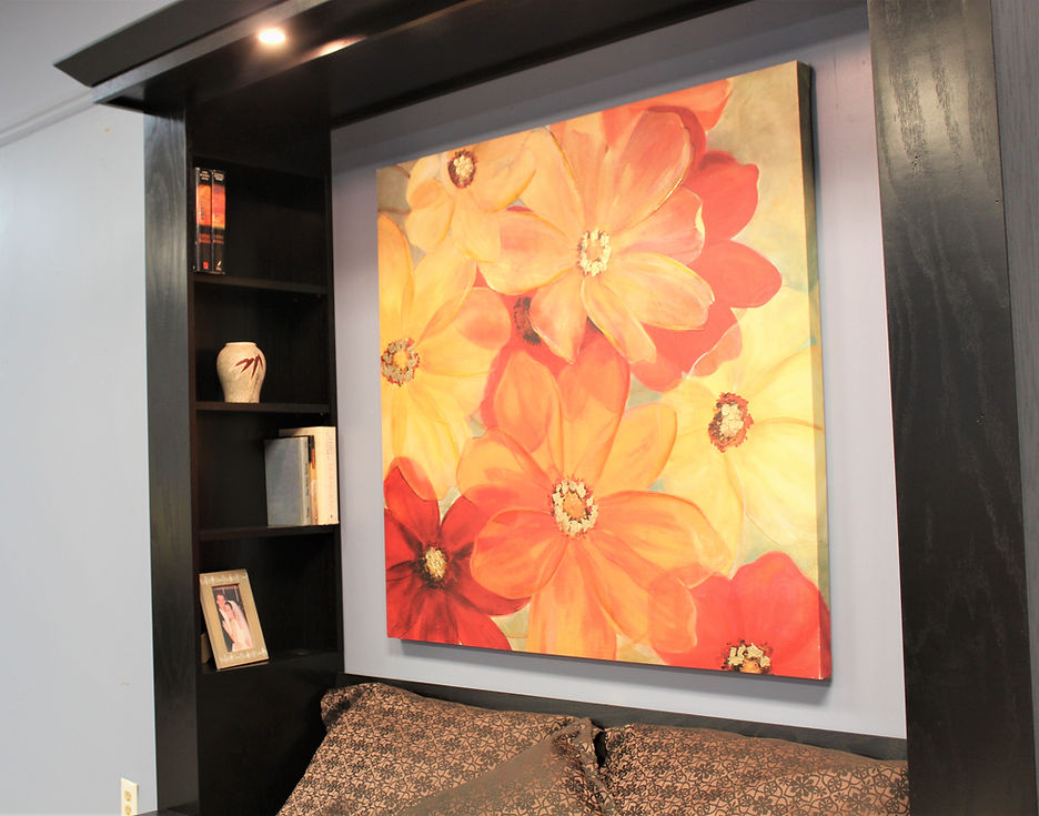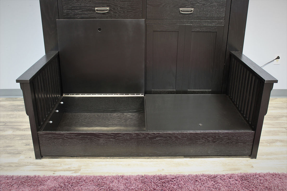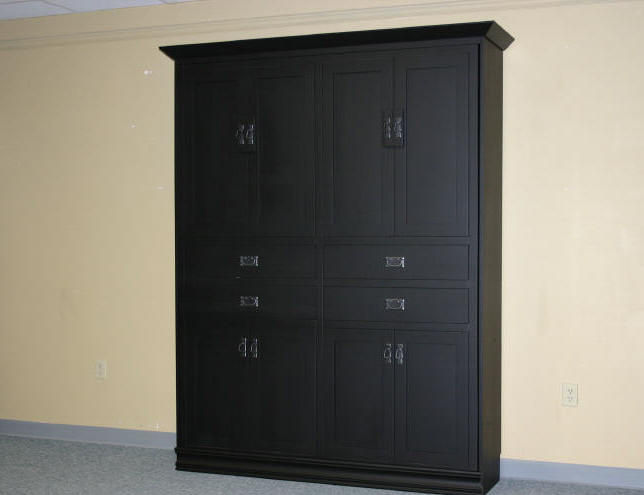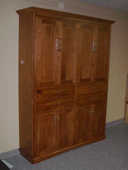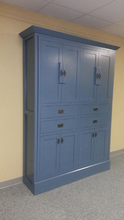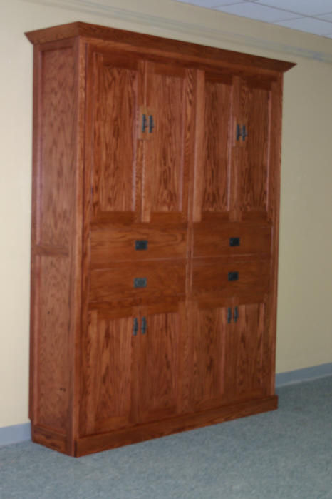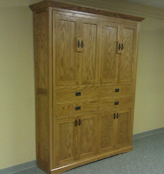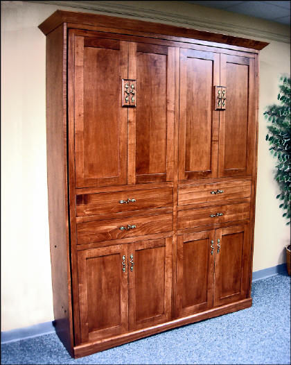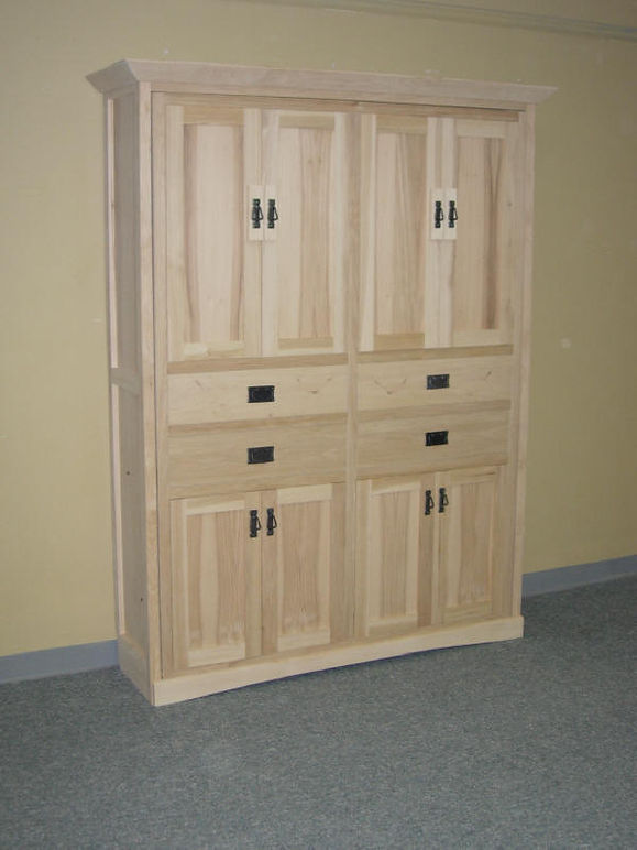 This is a cool style. This is a face with a series of false Doors and drawer fronts. We built this in a mission style (in oak), can can easily look like a shaker piece of furniture when using maple wood.
