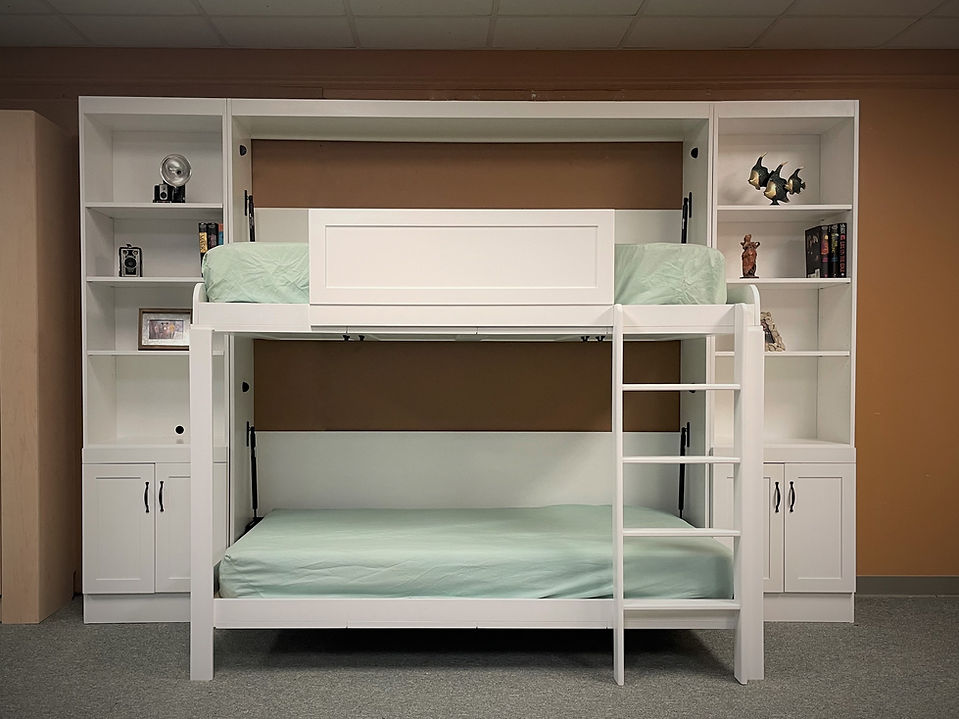 A Murphy bunk bed is a wall bed that folds vertically against the wall when not in use, just like a standard Murphy bed. However, instead of a single bed, it features two sleeping surfaces stacked one above the other, similar to a traditional bunk bed. This design allows for the efficient use of vertical space, making it ideal for small rooms or apartments where floor space is at a premium.