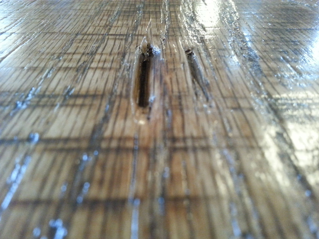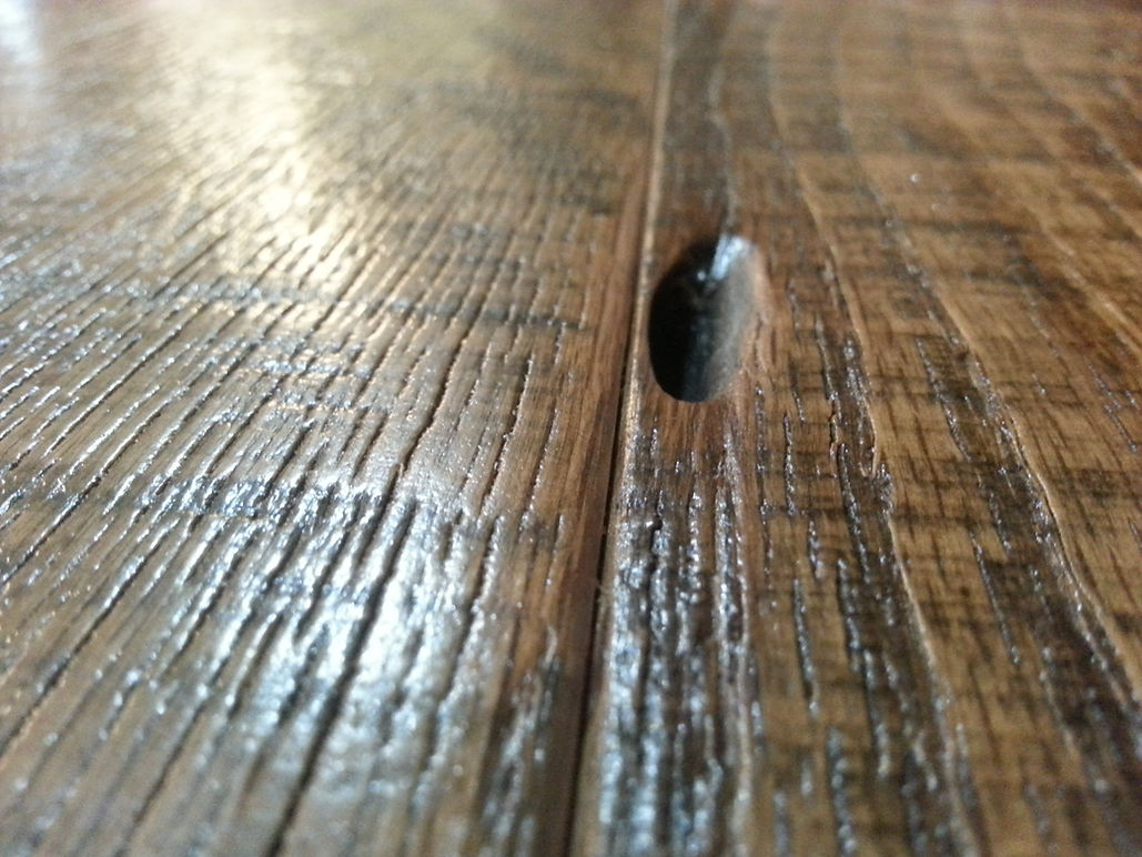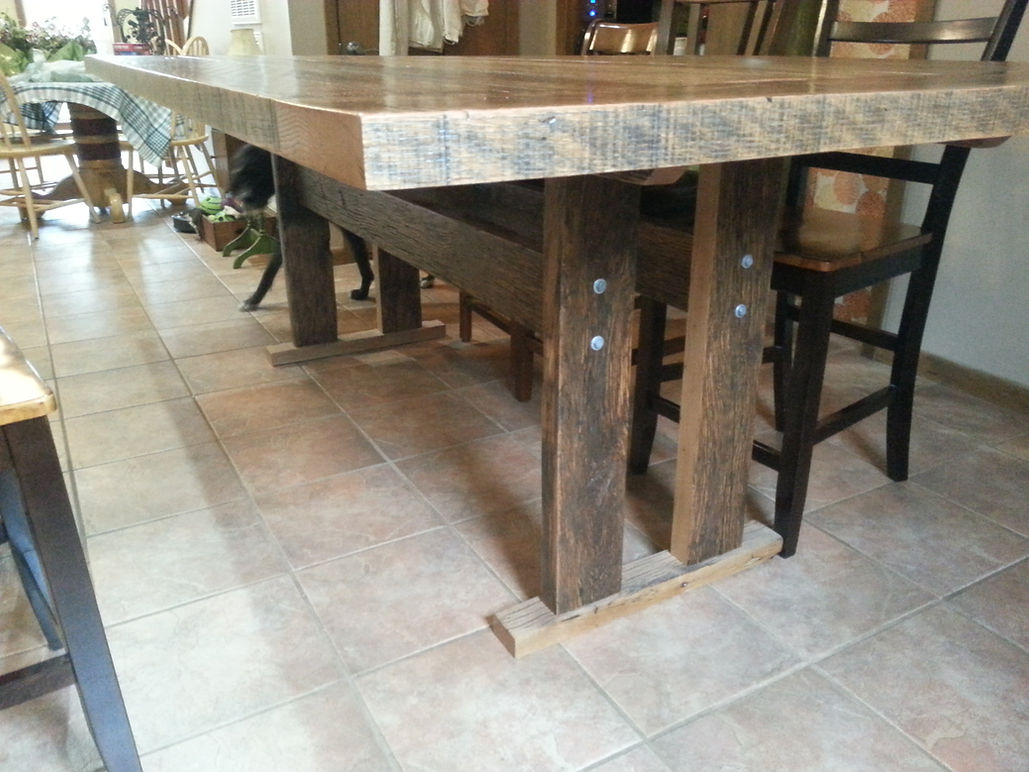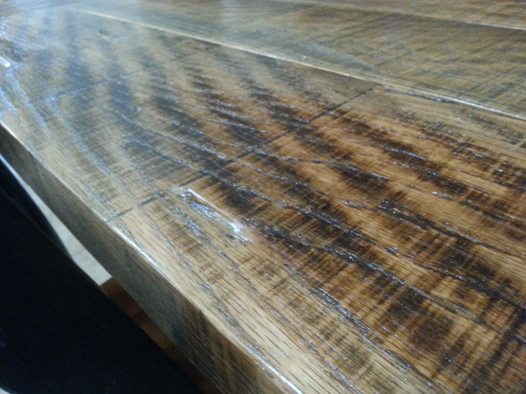 The 2″ thick oak was reclaimed from an old rail car and was sitting at someone’s house for the last several years.