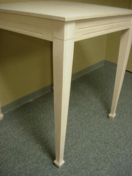 This is a custom table built in October 2011. The customer wanted custom legs that they designed. It is 42″w x 42″l x 36″h. With it being 36″ high, it was designed to be used with bar height chairs. We can build this one to whatever height you want.