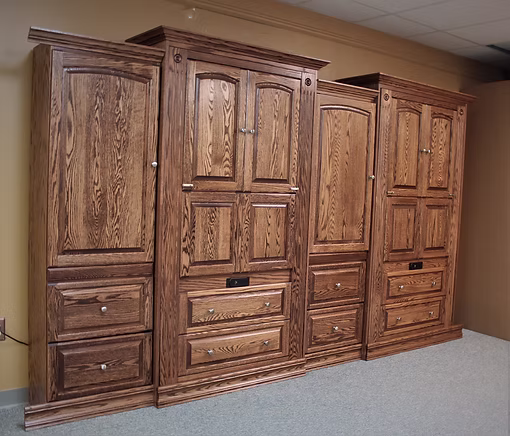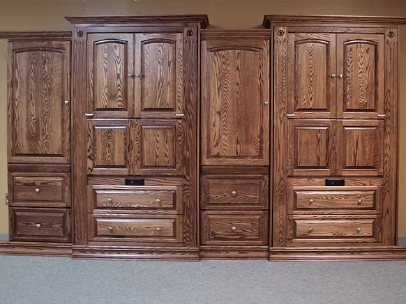 Here is the coolest part!  The four doors in the center make a hidden desk. We are the only ones to totally conceal the desk in the inner frame.  Most are just screwed on the face and look out of place.