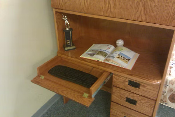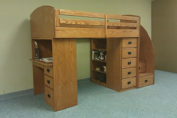 Have everything you need in one small space.  Bookcase, Desk, Chest, and extra bed.  It is made from a durable long oak. It can be used with or without a twin bed on the bottom, if you would like more play area.