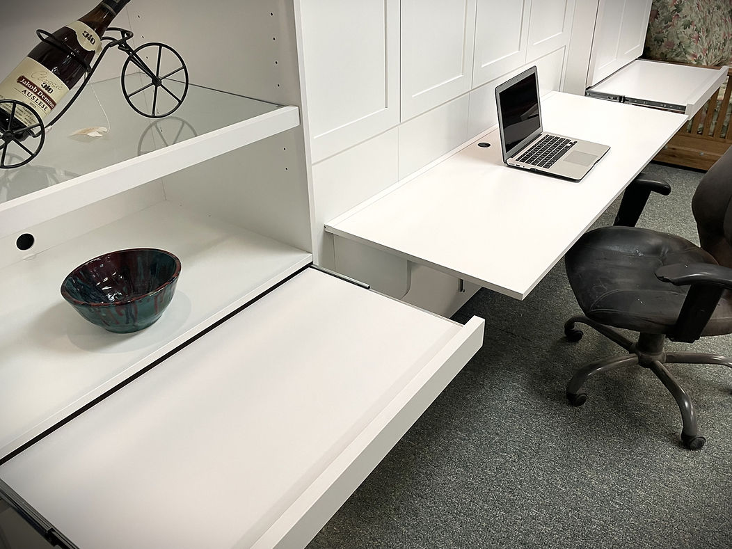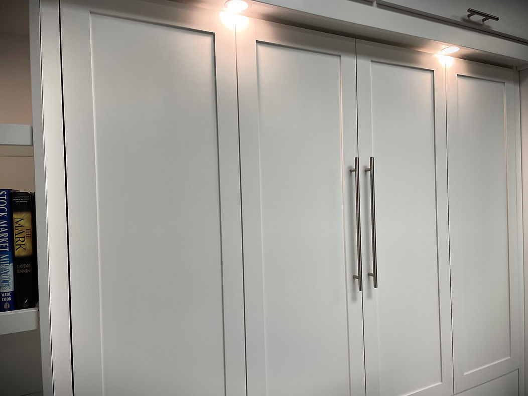 The Templeton is a shaker style face that is divided into four doors. It gives the appearance of four doors above the desk.