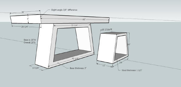 Table 60" x 30" x 29"h (Plus shipping)(Priced finished out) :