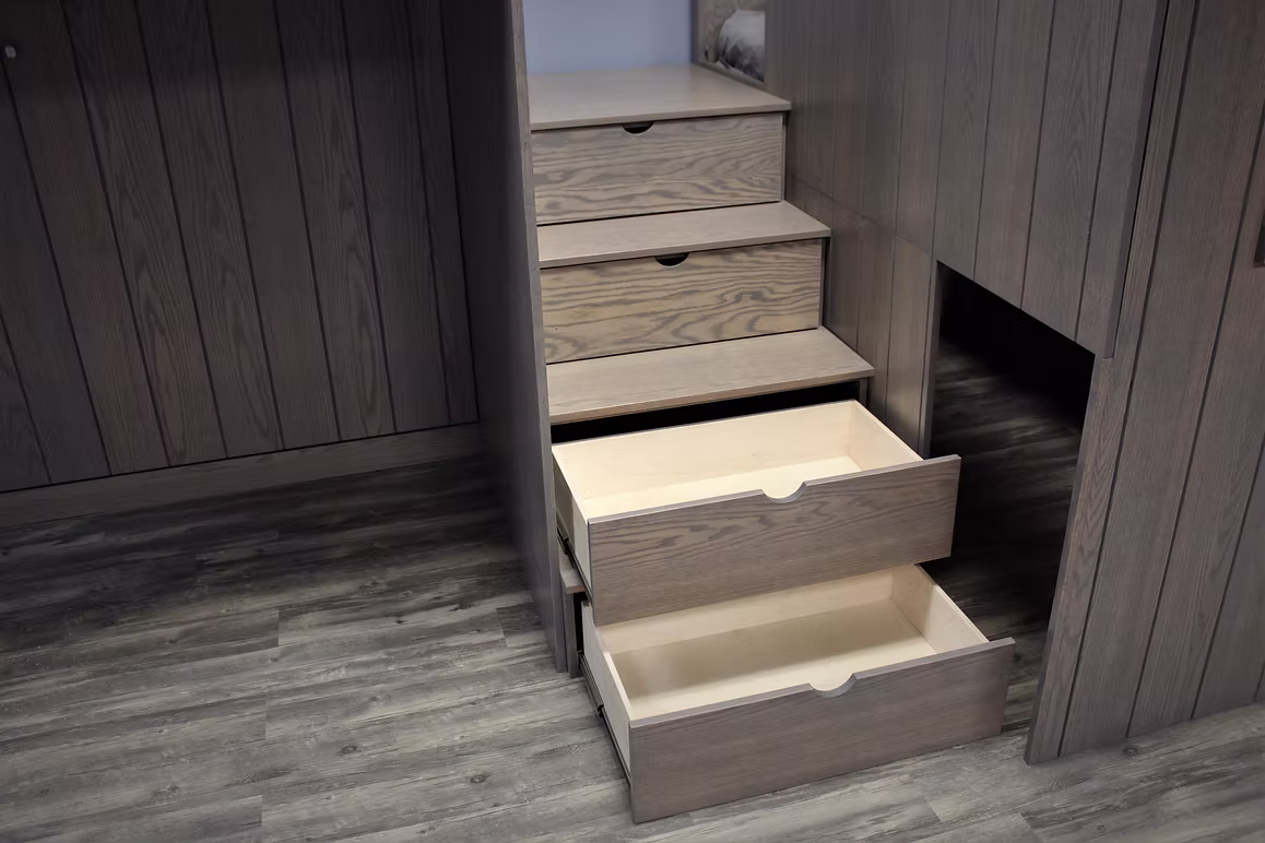 Not just one bed but three.  This has a Full Murphy bed, Full loft and a twin loft.  It also has lots of storage with the drawers under the stairs and the bed folds up for extra play area.
