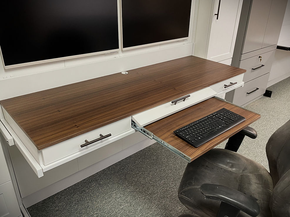 Rodriguez 08/23/24 Shorter Height Templeton with Monitors Showing the Bookcase Drawers