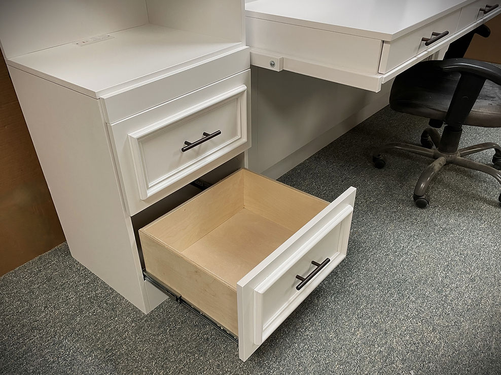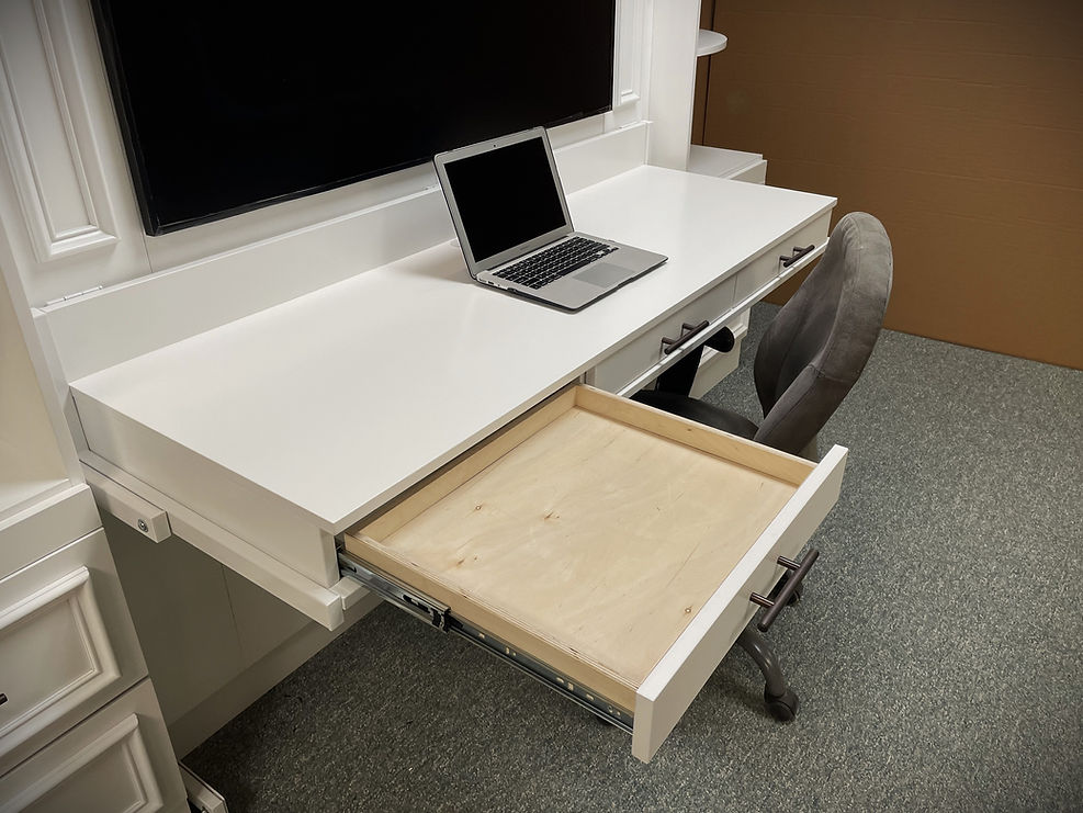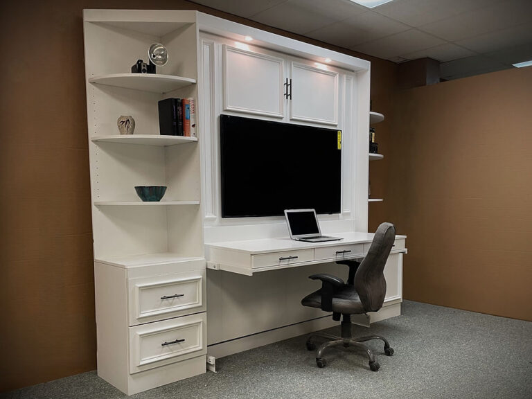 Clarke 09/06/24 TV Murphy Bed with New Yorker Trim and Custom Bookcases Showing the Under Desk Outlet