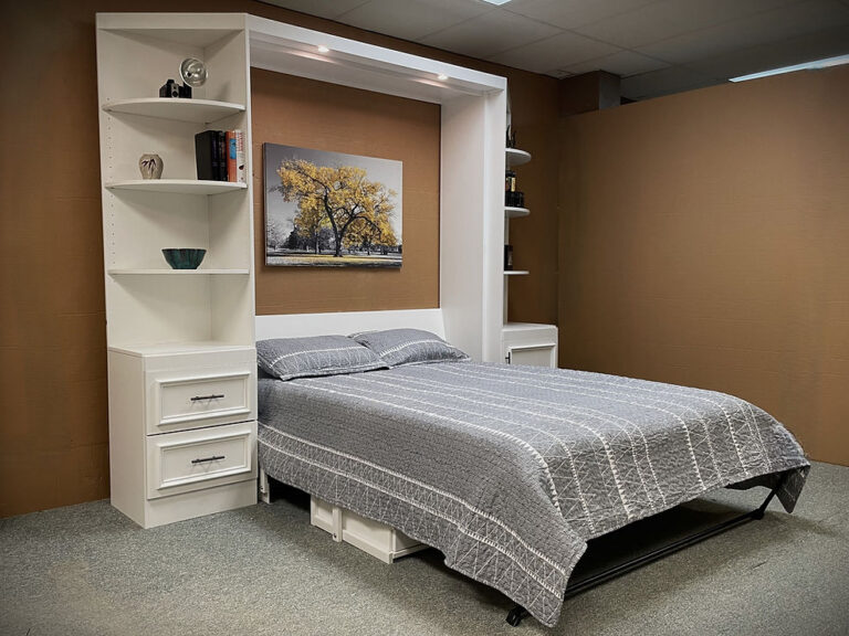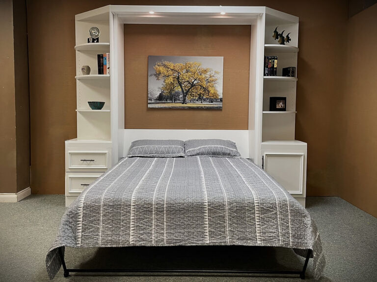 Clarke 09/06/24 TV Murphy Bed with New Yorker Trim and Custom Bookcases Showing the Drink Tray