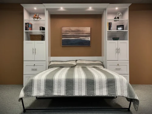 These finishing touches bring warmth, convenience, and a bit of every day luxury to the design – a perfect example of how customization can elevate a Murphy bed from simple furniture to a true centerpiece.