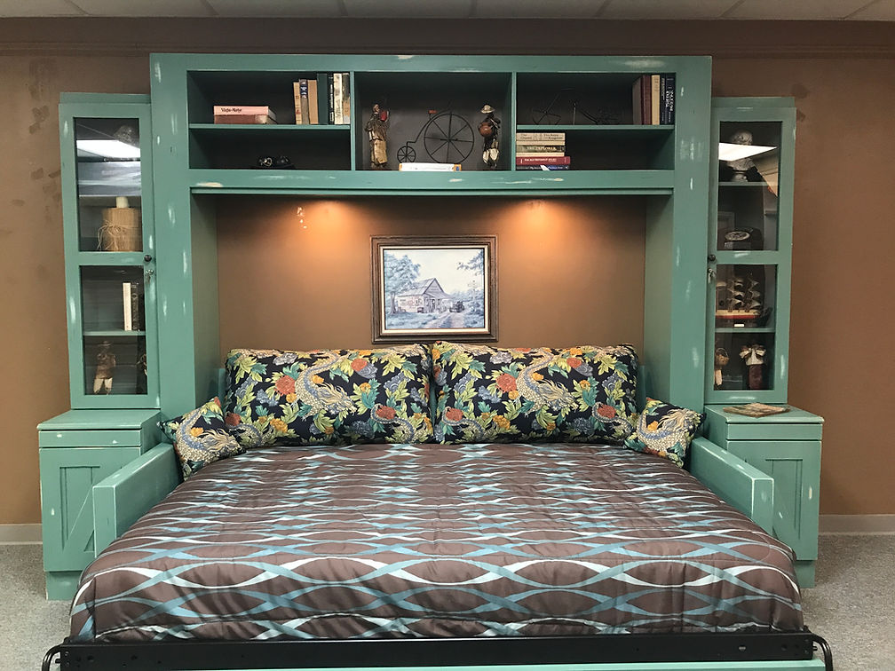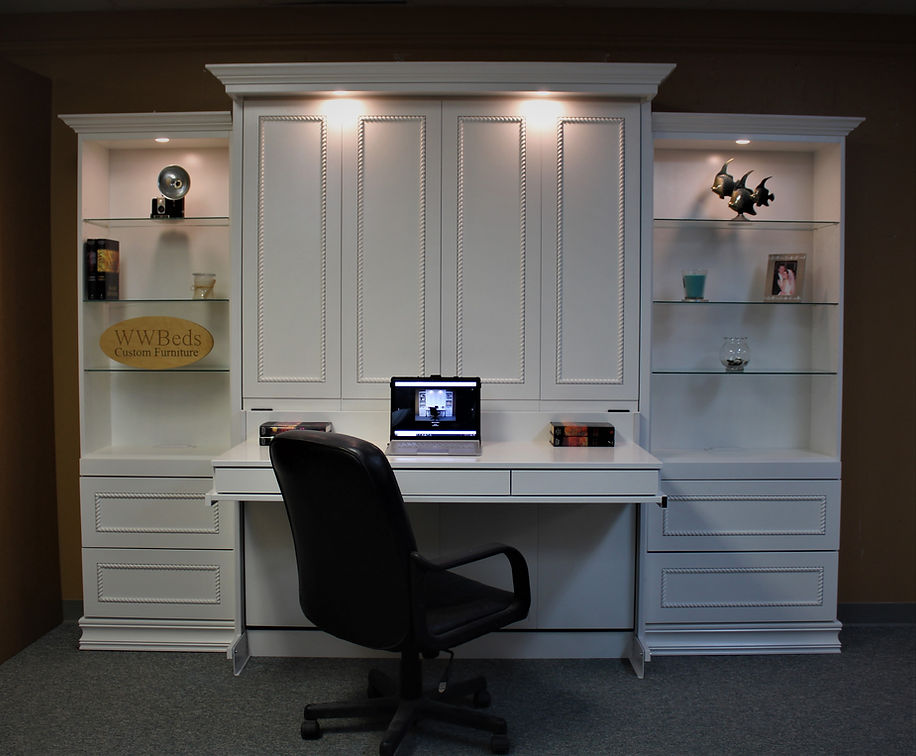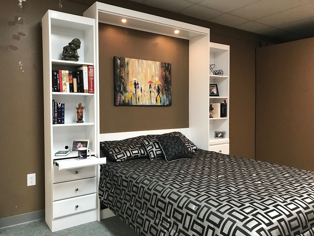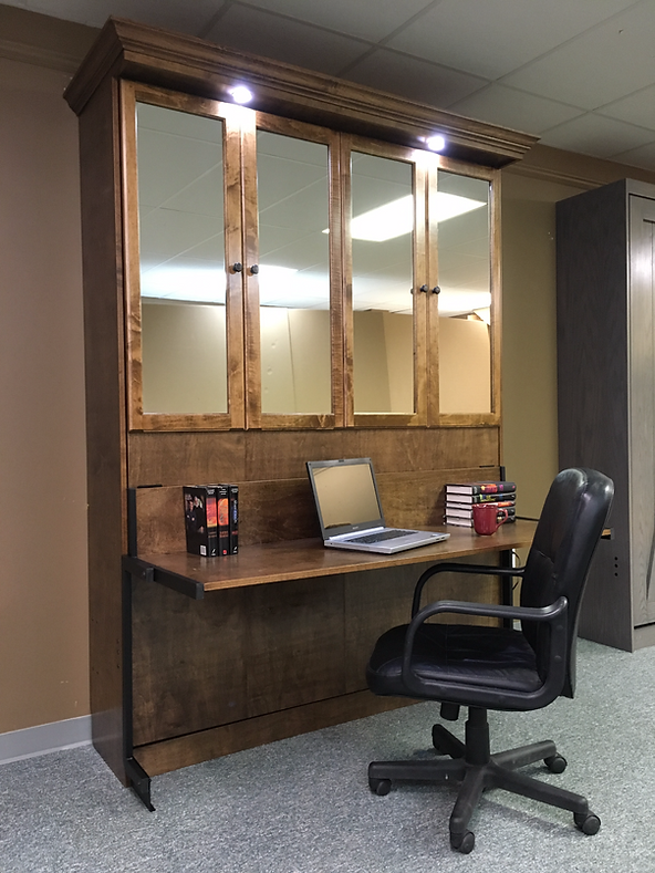 Top lights are outside the face of the murphy bed. Can be used with the bed both open or closed.  Great for use on the desk or sofa option.