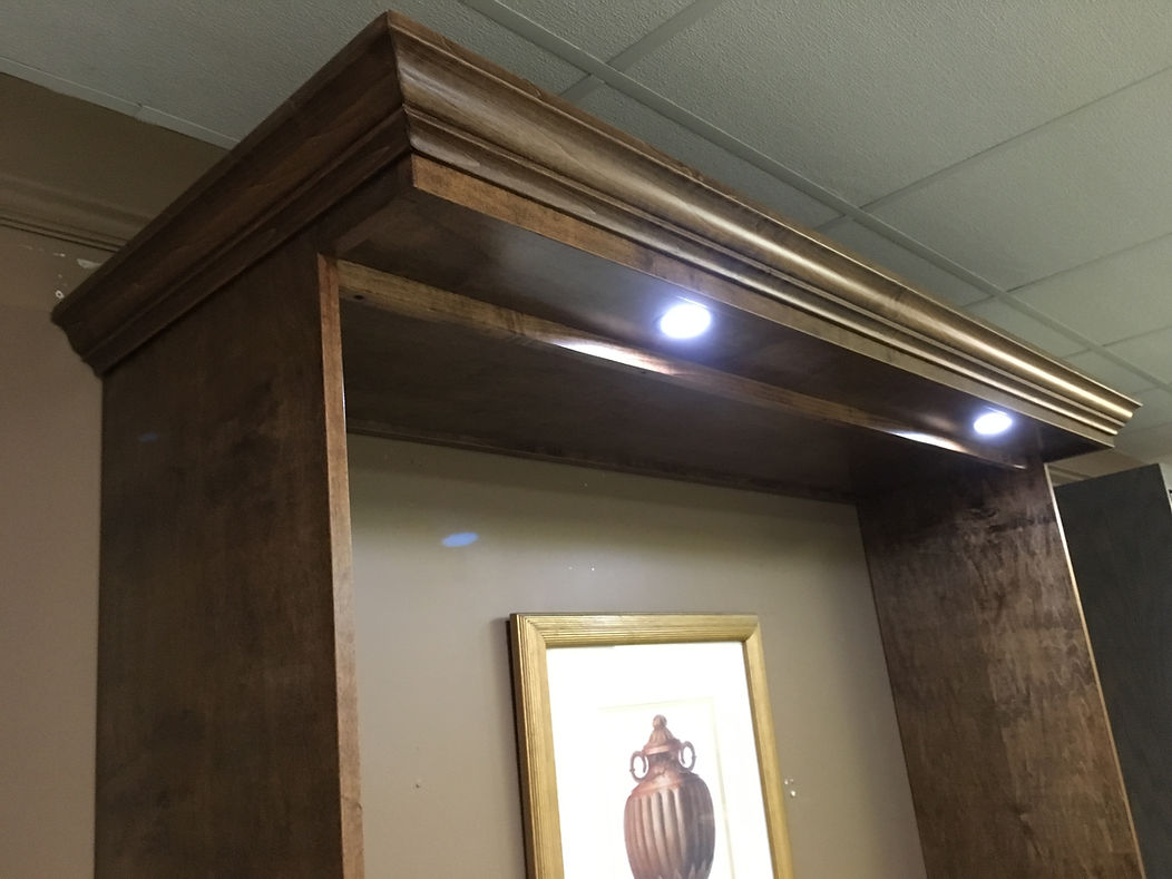 What we do to modify your order is to bring out the header, cut the two holes for the lights in the header.  To hide all the wires we cut a groove in one of the verticals.  We then embed the power wire in the vertical to the lights.  This keep installation easy and hides all wires.