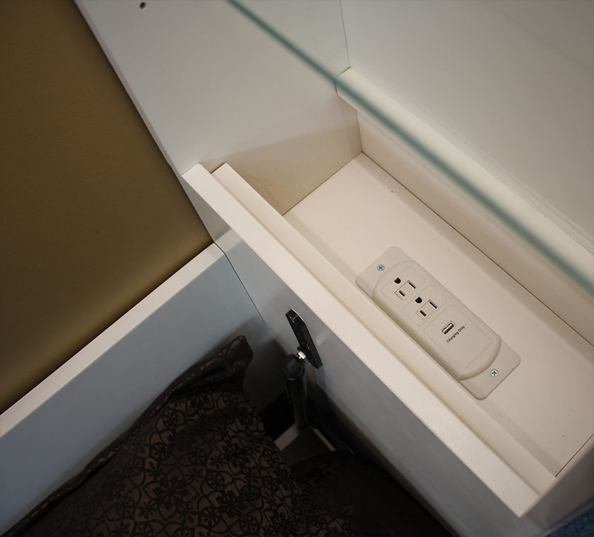 What we do to modify your order is to cut the two holes for the lights in the header.  To hide all the wires we cut a groove in one of the verticals and in the headboard.  We then embed the power wire in the vertical to the lights.  This keep installation easy and hides all wires.